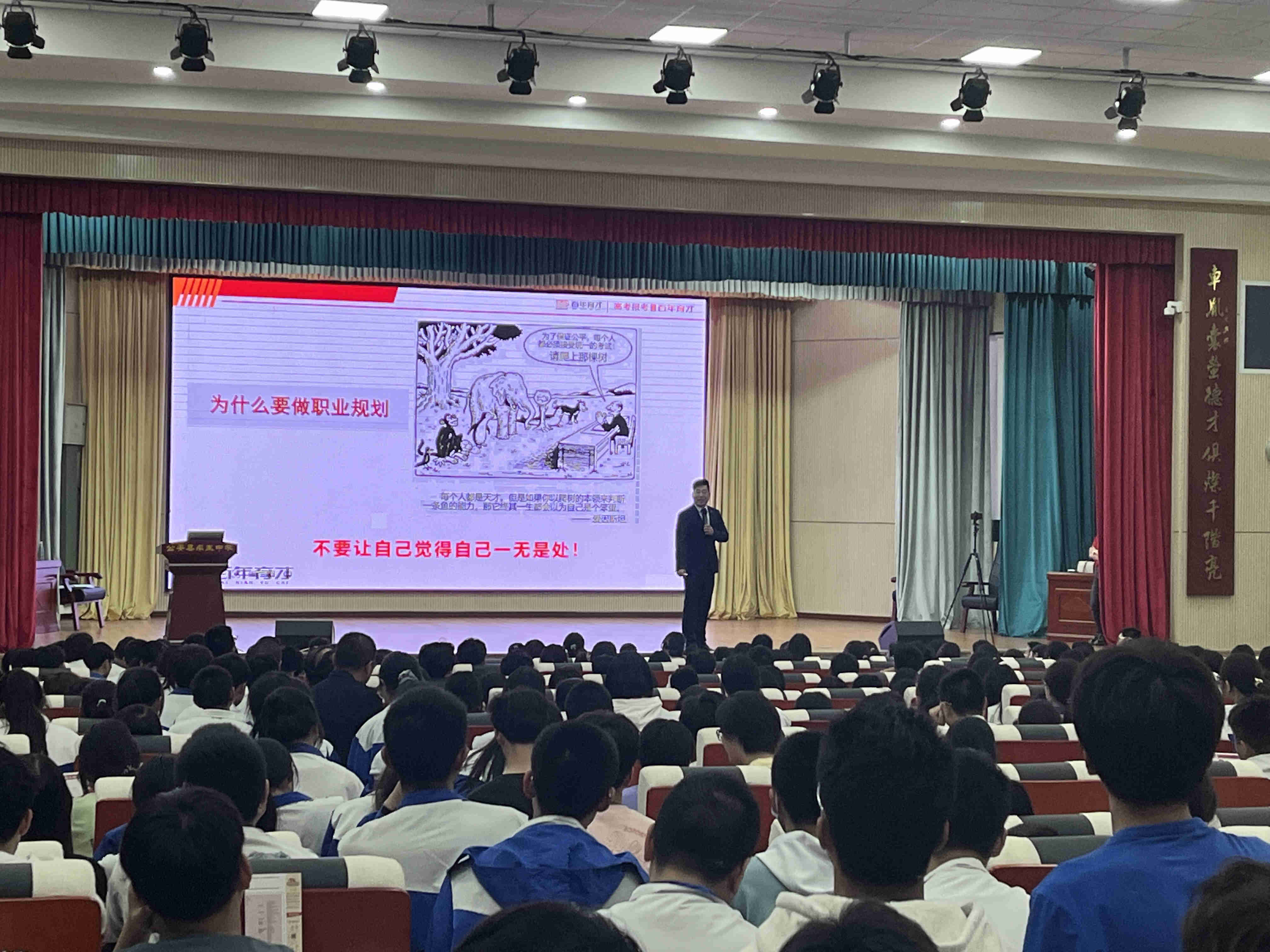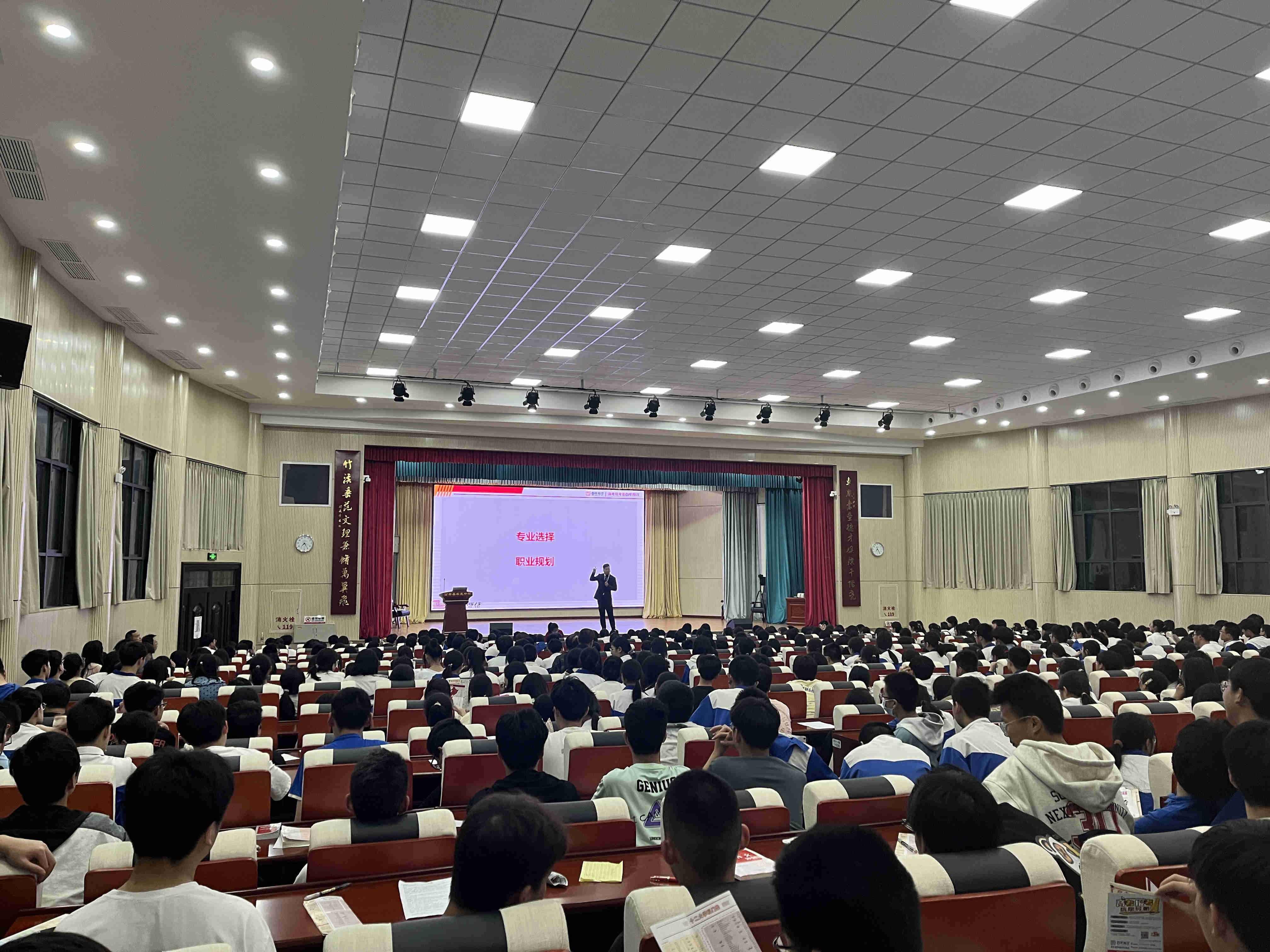 在此次讲座中,陈春贺讲师通过对“未来的专业和考生的契合度”进行分析;对“填报中我们要知道的风险点”进行解读;对“高考倒计时如何调整自己的状态”进行阐释,为车胤中学的学子带来了一场立足于新高考背景下的求真务实的讲座。
